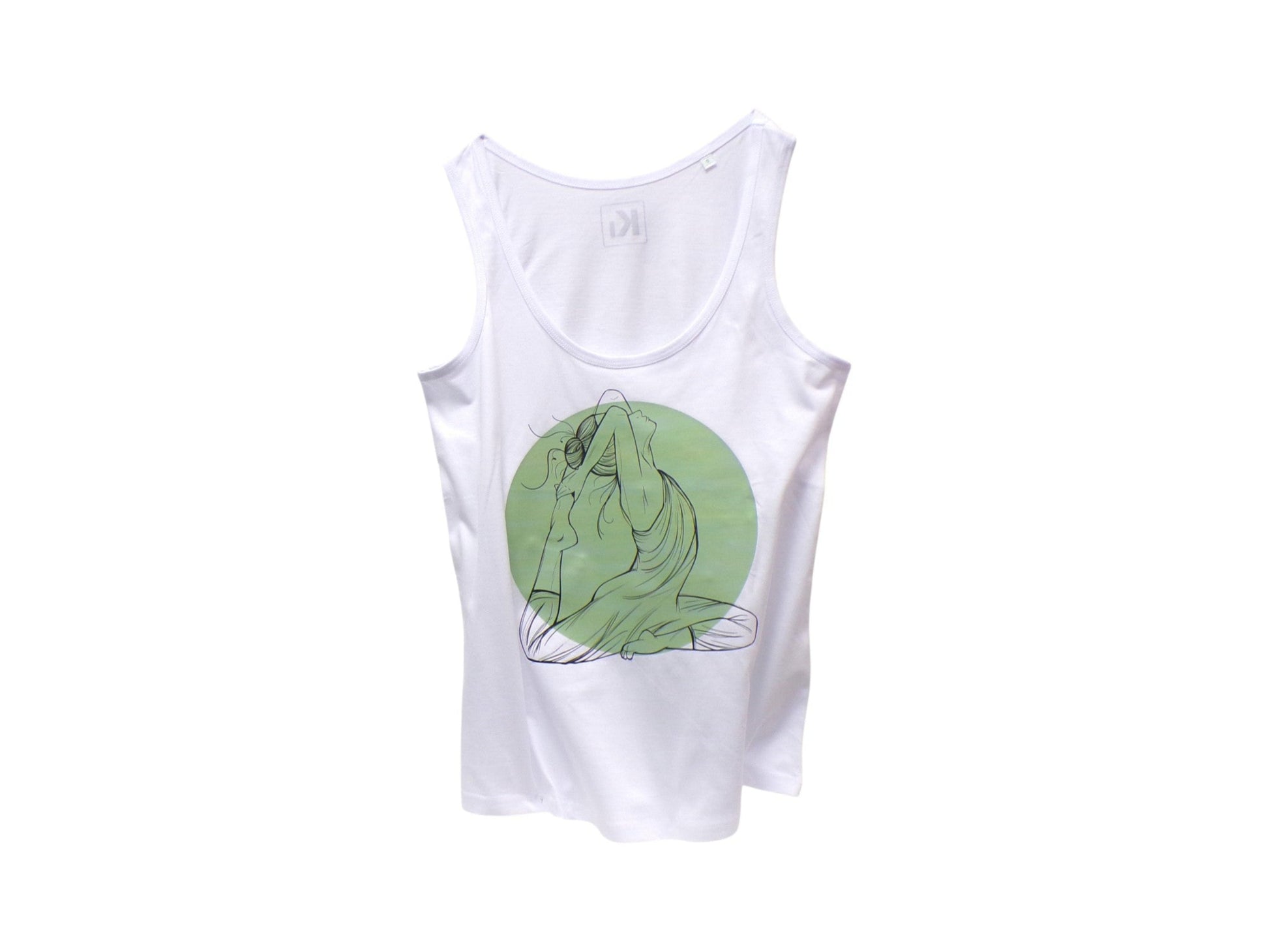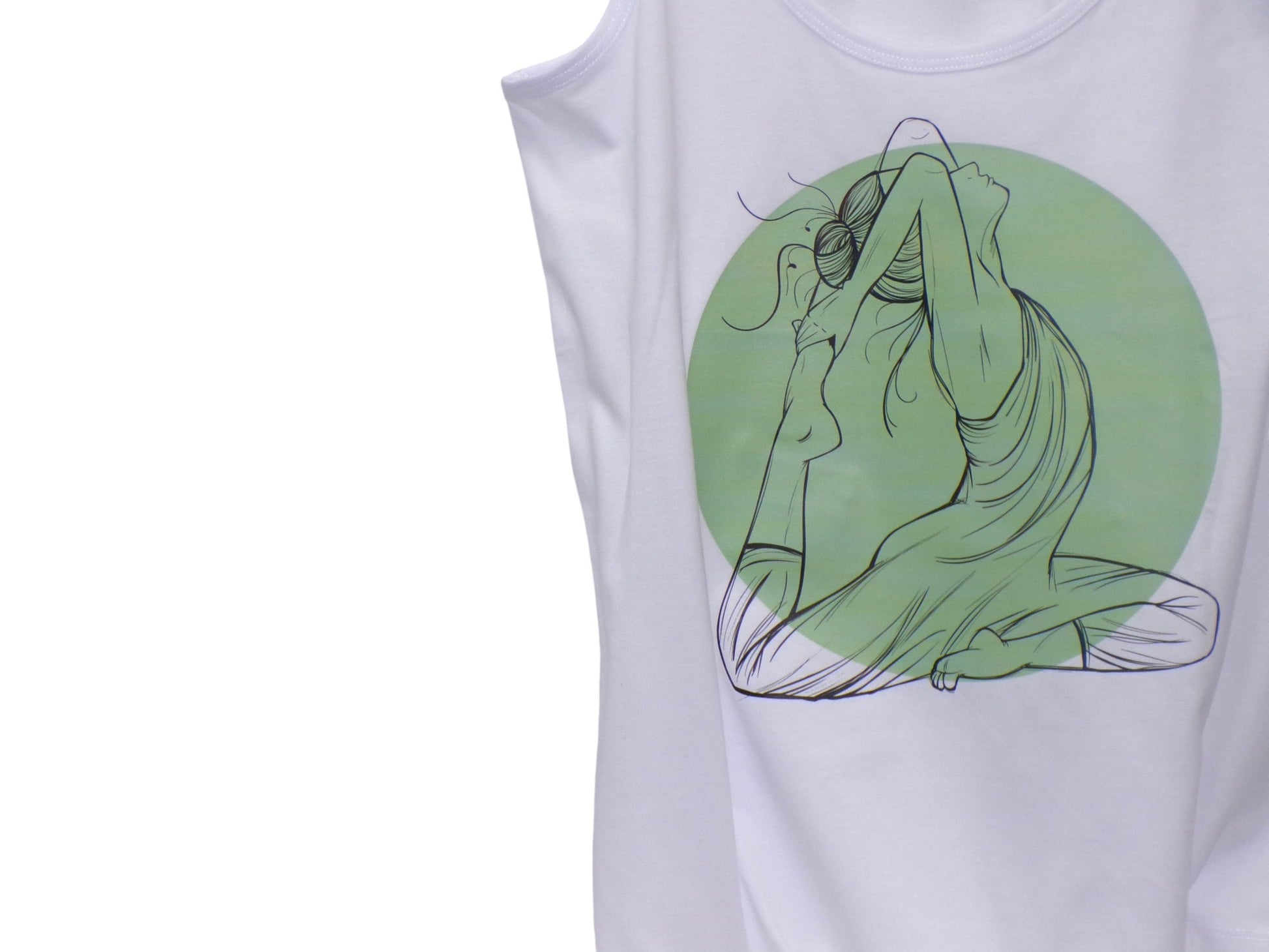Camiseta super cómoda para mujer con dibujo en el delantero de yoga y escote amplio.