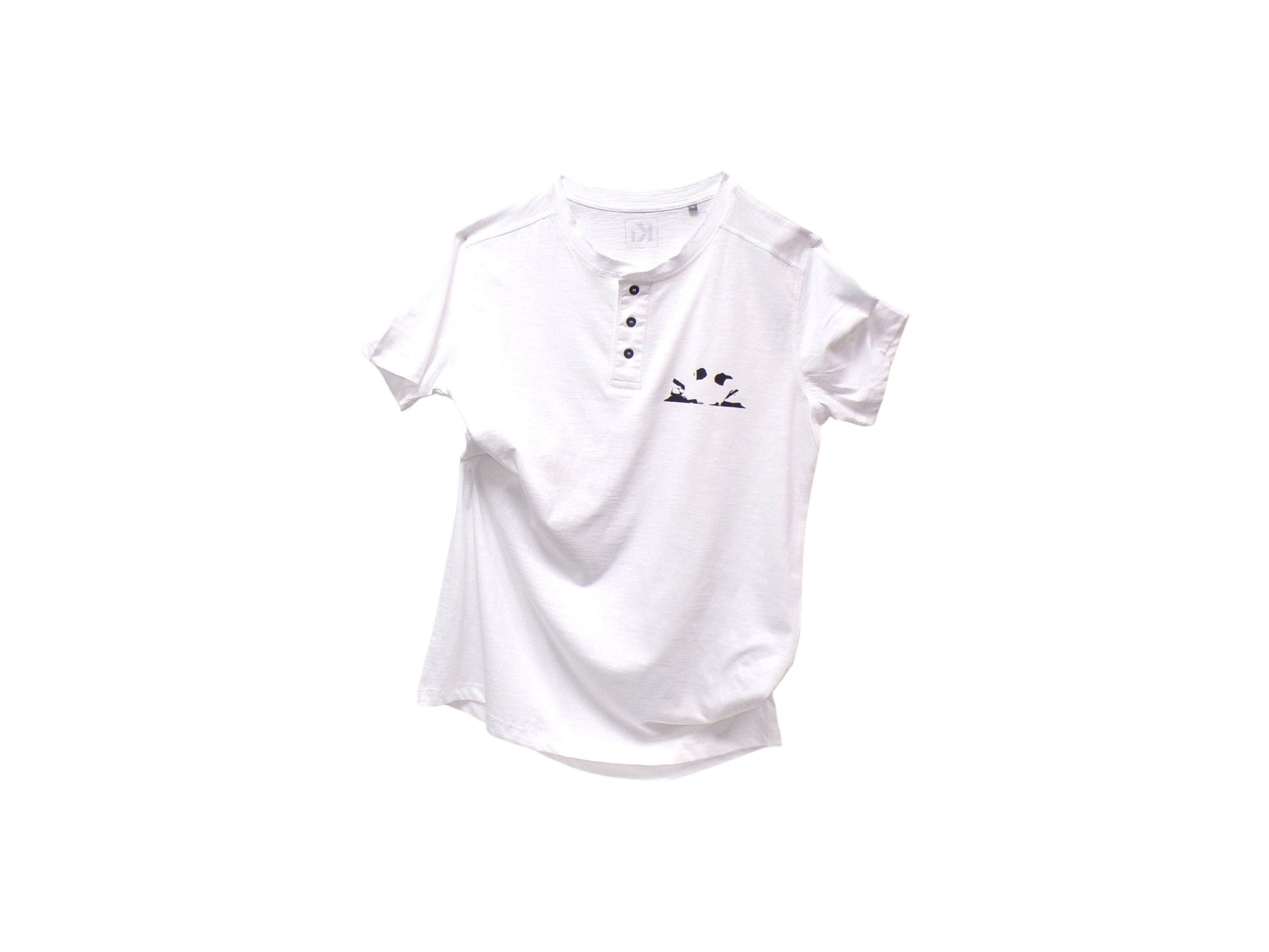 Camiseta de hombre con cuello redondo y botones en el escote.
